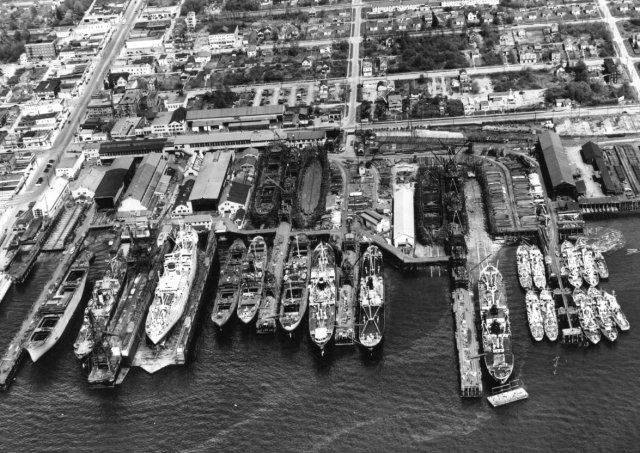 .Aside from a couple of the old shipyard buildings and artifacts, most of the buildings have been torn down and replaced with condos. This was a hopping place during WWII, and Burrard Dry Docks was the first to hire women in significant numbers and pay them decent wages.