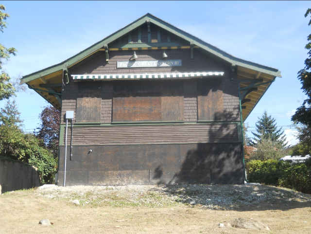 The old Pacific Great Eastern (PGE) Railway-North Van’s first train station—is boarded up and stuck behind a chain link fence until a new home is found for it (I hope).