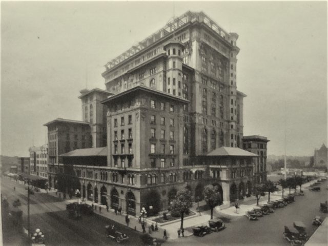 The second Hotel Vancouver stood at Granville and Georgia Streets, and is the most elegant and ornate building that we ever destroyed. It was pulled down and replaced with a parking lot for a quarter-of-a-century, and it’s now home to the TD Bank Tower and the building that now houses Nordstroms.