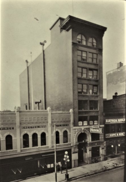 According to Andy Coupland, of the excellent Changing Vancouver blog, the six-storey building in the photo (above) was called the Stock Exchange building, and the Province had offices there for a time. Today, it’s an SRO called Regal Place. The two-storey building next door (140 west Hastings) was the Province’s home from 1903 to 1925, and Andy thinks is most likely the building where Barr and Anderson did their work.