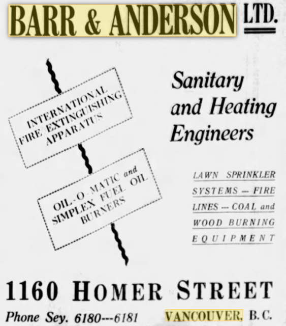 Barr and Anderson, was a Vancouver company founded in 1898 and the name behind the mechanical work in some of our oldest buildings – a few of which still stand.