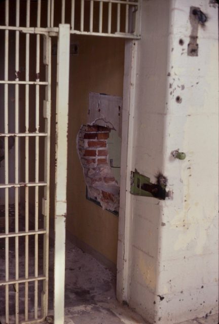 Just after 9 p.m. on April 19, 1963 prisoners Nelson Wood, 27, Gerard Caisy 28 and Wayne Carlson, 21 escaped through an auditorium window. They were spotted by prison guard Patrick Dennis who was patrolling with his dog. Dennis fired three shots in the air, before he was subdued by prisoners armed with hand-made knives and Molotov cocktails made with electric light bulbs filled with gasoline and fused with a twist of rag.