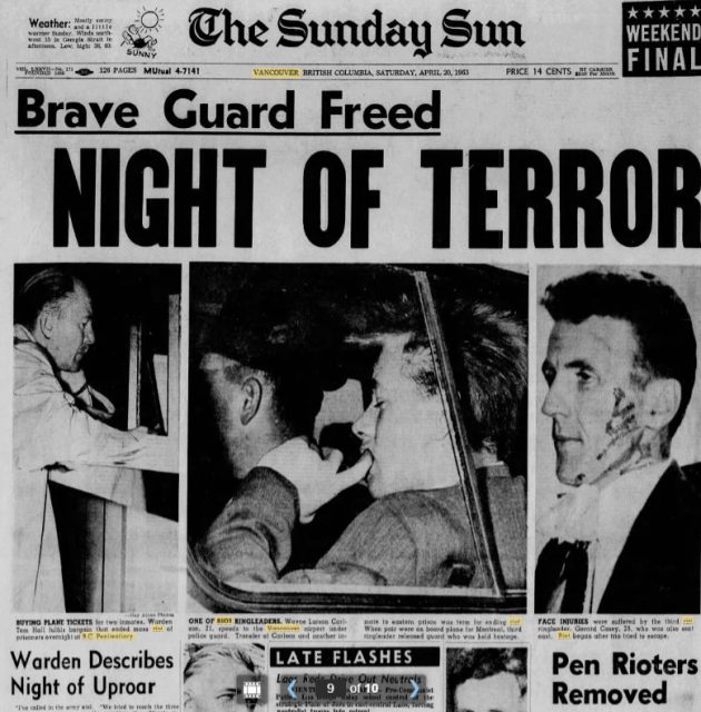 BC Penitentiary was a maximum-security federal prison plagued with riots throughout its 100-year life. There was the 1975 riot and hostage taking resulting in the death of Mary Steinhauser, a 32-year-old social worker. She was one of 15 hostages shot when police stormed the prison. Long before that, there was the 1934 riot when 78 prisoners refused to work unless they were paid. But perhaps the most bizarre, was the riot of 1963 when radio news hound Jack Webster became part of the story.