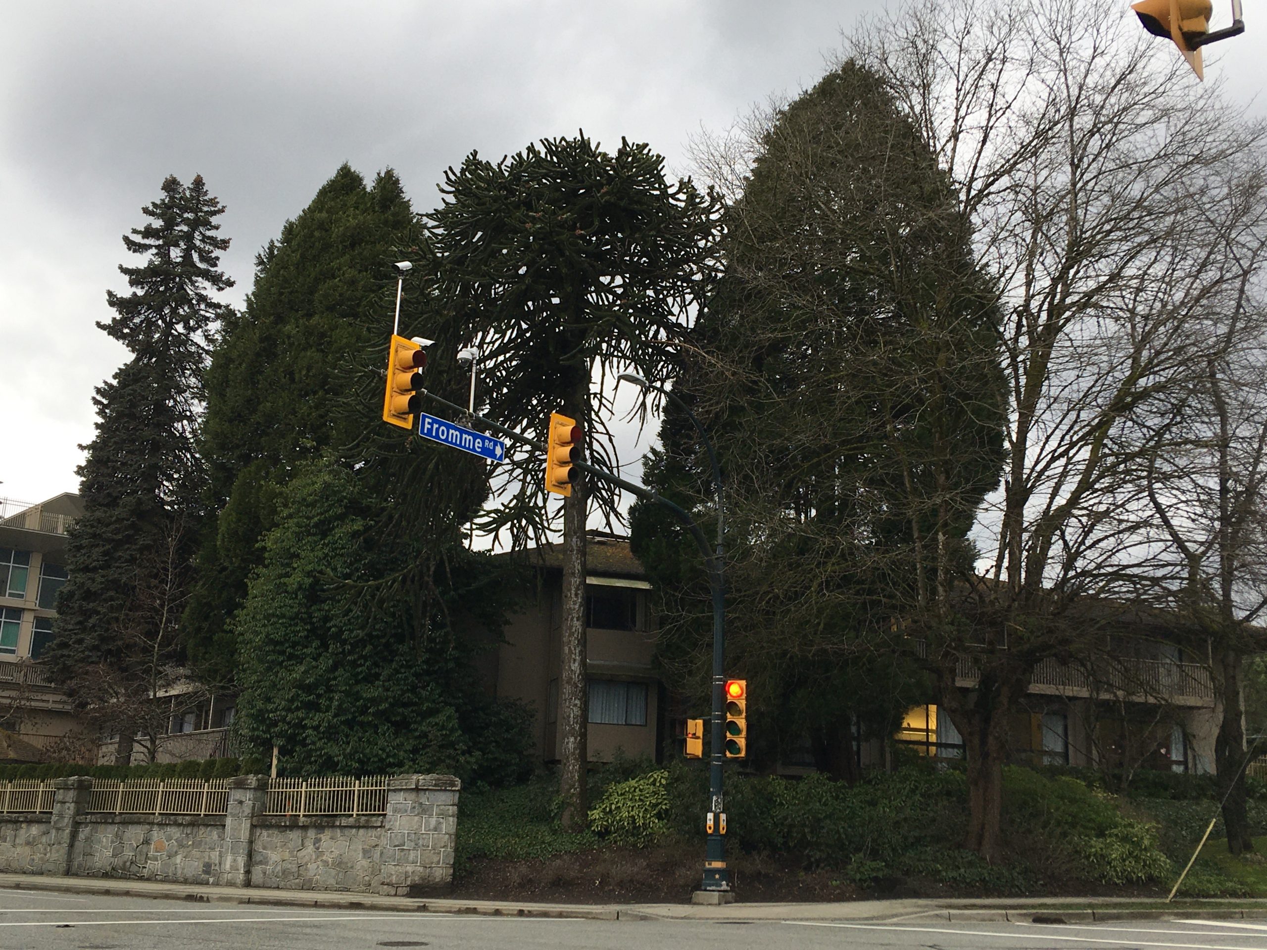 I was driving along Lynn Valley Road for probably the hundredth time this year, stopped at the traffic lights at Fromme. The Lynn Valley Care Centre is on the corner there, sitting behind a stone fence and a very big monkey tree.