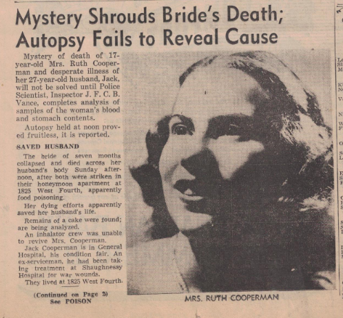On March 9, 1947, Inspector Vance of the Vancouver Police Department was called to an apartment in Kitsilano, Vancouver to check out the suspicious death of Ruth Cooperman. The 17-year-old was found naked and lying dead across her husband’s unconscious body.