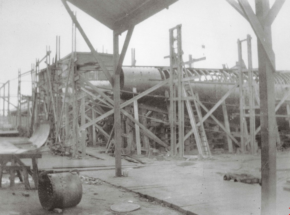 The yard at Barnet was surrounded by a high barbed wire fence and search lights. There was a guard of nine men on loan from the military, and after four weeks the subs were well under way. The top-secret plant soon had 460 employees working day and night, under the ruse that they were constructing oil barges.