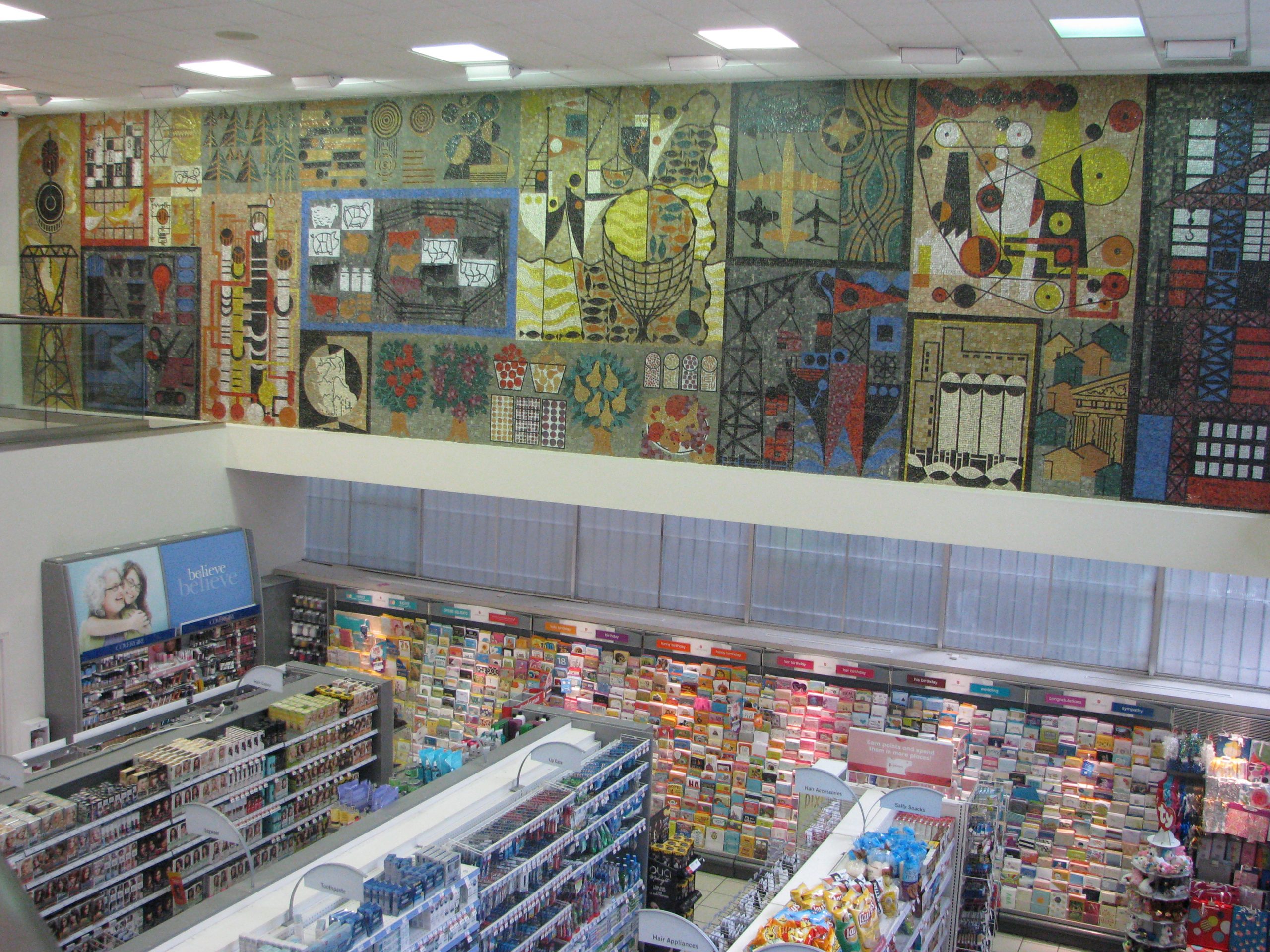 The Imperial Bank of Canada opened its new building on April 21, 1958 at Granville and Dunsmuir Streets. It featured this stunning mural by BC Binning. The building is now occupied by a Shoppers Drug Mart, but the mural is still there. From Vancouver Exposed: Searching for the City’s Hidden History The Mural: Next time… Continue reading BC Binning’s Secret Mural