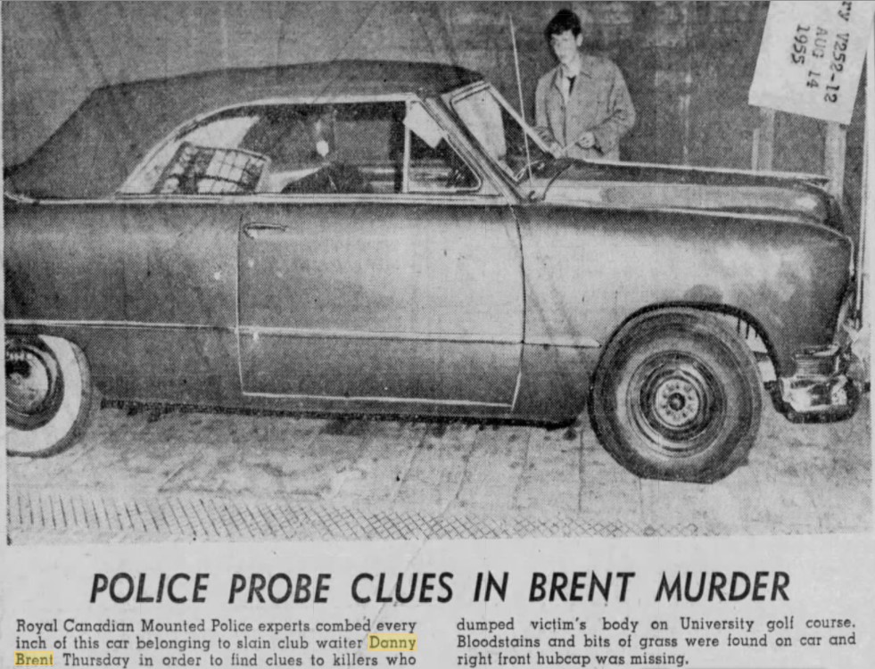 Danny Brent’s body was found on the tenth green at UBC’s golf course on September 15, 1954. An early edition of the newspaper was stuffed inside his shirt soaked with his blood. There was a half-smoked cigarette inside his shirt where it had dropped from his mouth when he was shot—once in the back and twice in the head with .45-calibre bullets.