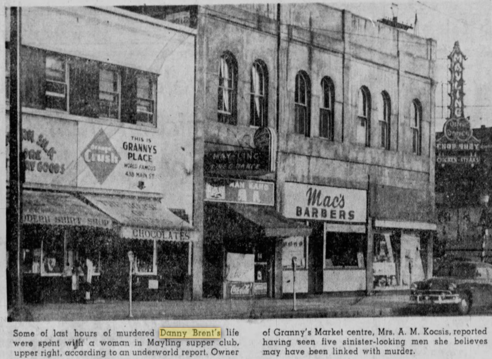 On the night of his murder, Danny, 42 had finished his shift at the Press Club, and headed over to the Mayling Supper Club in Chinatown. He parked his red 1950 Meteor convertible—in the parking lot at the back of the building. A witness said he saw Danny leave with a woman and two men through the back door.