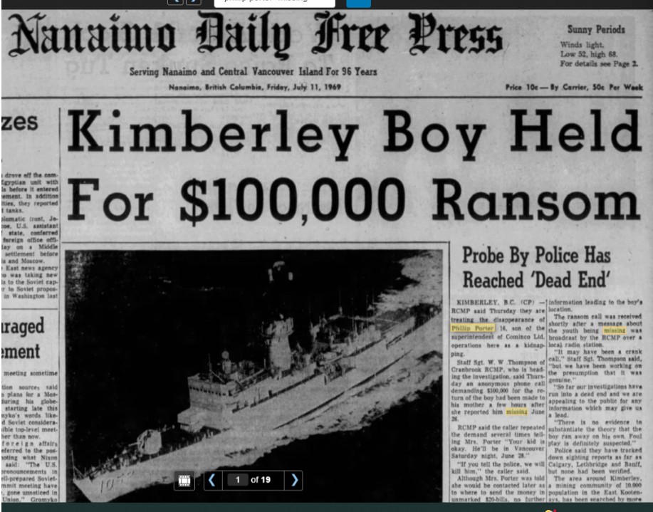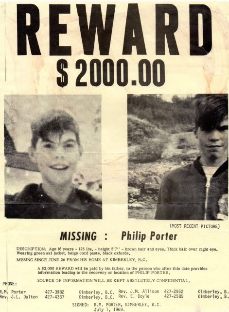 On June 26, 1969, 16-year-old Philip Porter left his home in Townsite, Kimberley to run some errands for his mother. The son of the Cominco boss never came home. A ransom note demanding $100,000 for his safe return arrived instead.