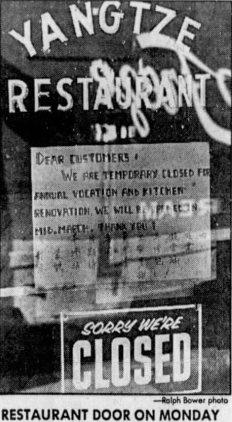 I remember this tragedy, as I lived close by and the Yangtze Kitchen was a #1 favourite restaurant, not only for the wonderful meals, but the most hospitable family. It was like home. I also recall when the Yangtze was located on Denman St, prior to moving to Robson St location. The restaurant was in a tiny space and I recall a red banner at the doorway, which billowed out with the wind.