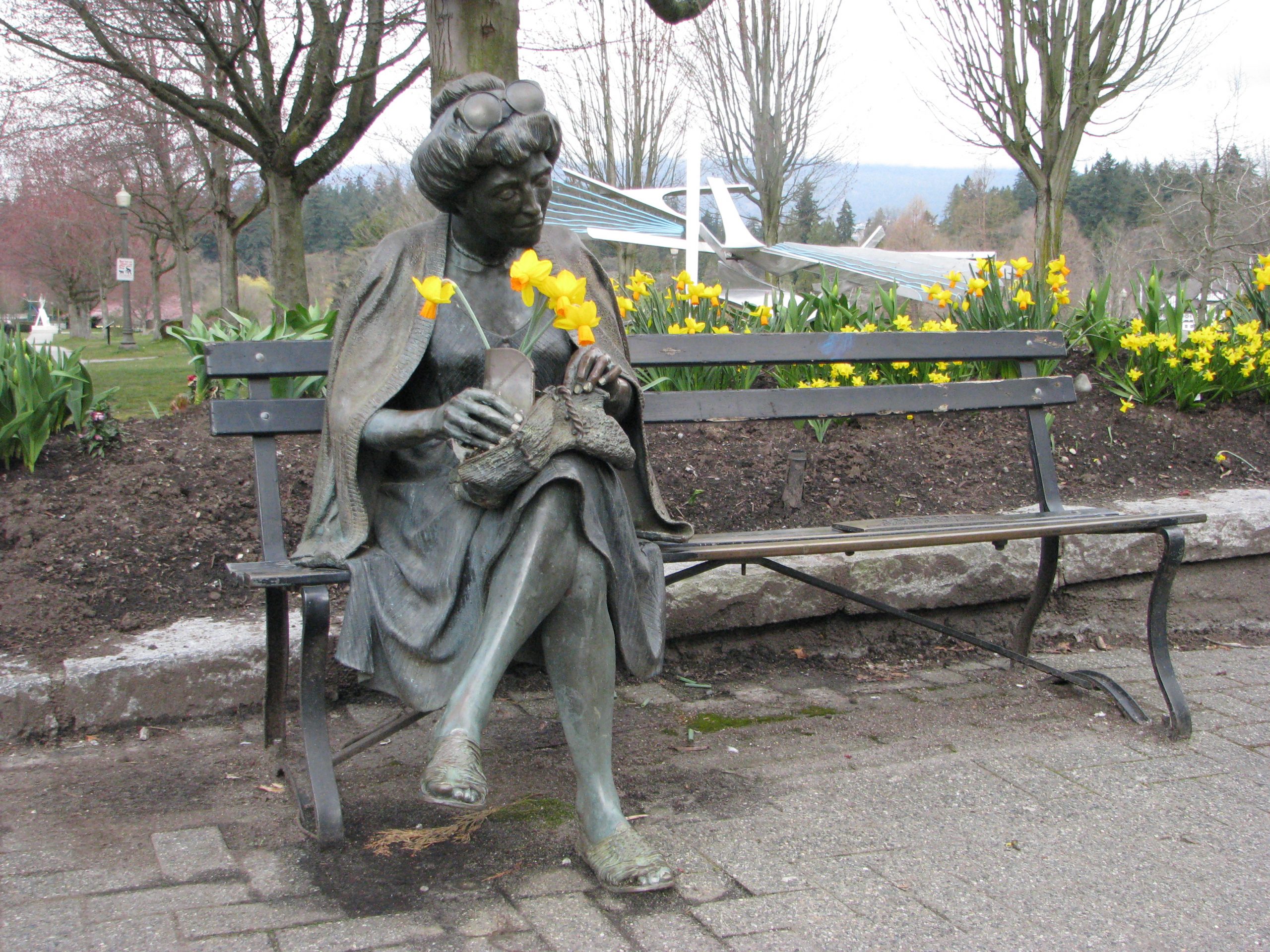 Did the Hawaiians came over to work for the HBC get stationed at Fort Langley? Is the lady on the bench still there?