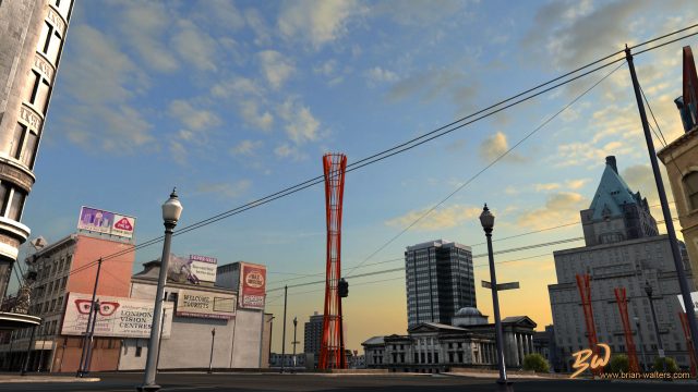 According to a news media release at the time: “The 60-foot towers, symbolic of giant torches, a traditional heraldic device, are a fitting expression for Canada’s 100th birthday.”