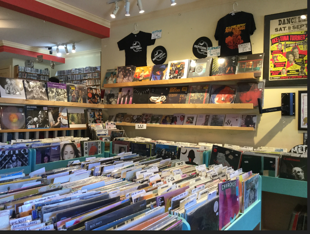 I had the pleasure of visiting Neptoon Records on Main Street for the first time last week. The place was packed with browsers, most of them young. The second thing I noticed was the sheer number of records—thousands of them everywhere you look. They are filed neatly in the store, stacked down the stairs, and they fill the basement. Owner and founder Rob Frith, tells me that he had to stop renting one of the upstairs rooms so he could use it for storage.