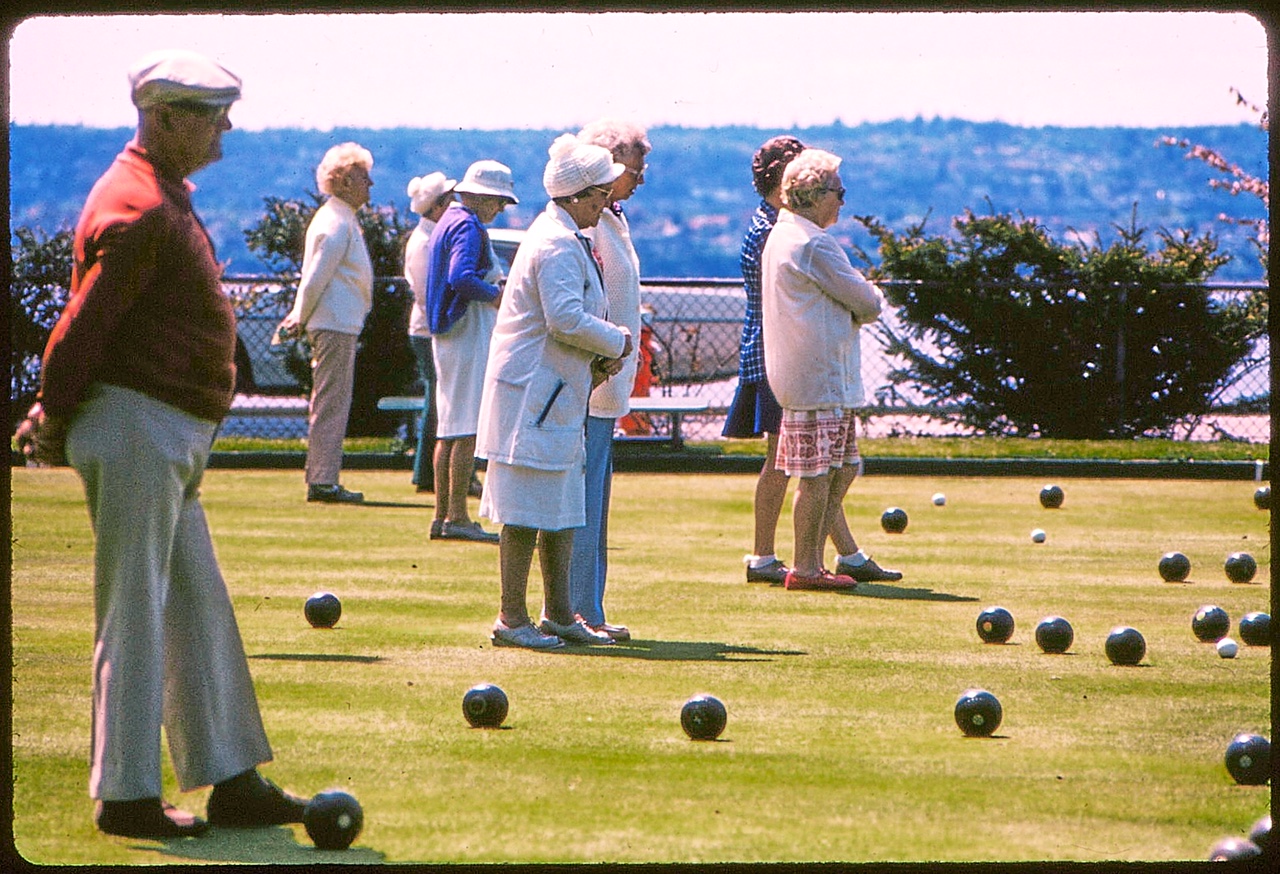 Stanley Park lawn bowlers. Howard Fry photo, 1976