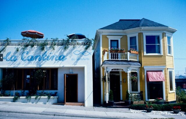Menghi donated the lane house to the Vancouver Heritage Foundation, and it’s been part of the Mole Hill heritage house landscape on Pendrell Street near Thurlow since 2002. Menghi’s former restaurant was replaced by a 39-storey condo tower called the Pacific. Miraculously, the Leslie House survives among a sea of condo buildings around the corner from its original location. It’s now the home for Blenheim Realty and a couple of property developers.