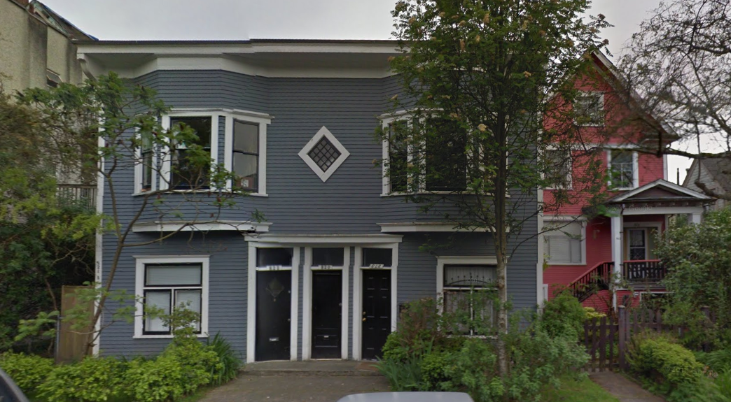 “There were originally three lots with three houses. Two of the houses were moved to the back of the properties and apartment buildings built at the front,” says Ryan. “The third house was amalgamated with the east apartment building, but can be seen if you look at the roof line of the building to the east of mine (828 east Pender).”