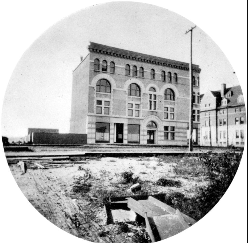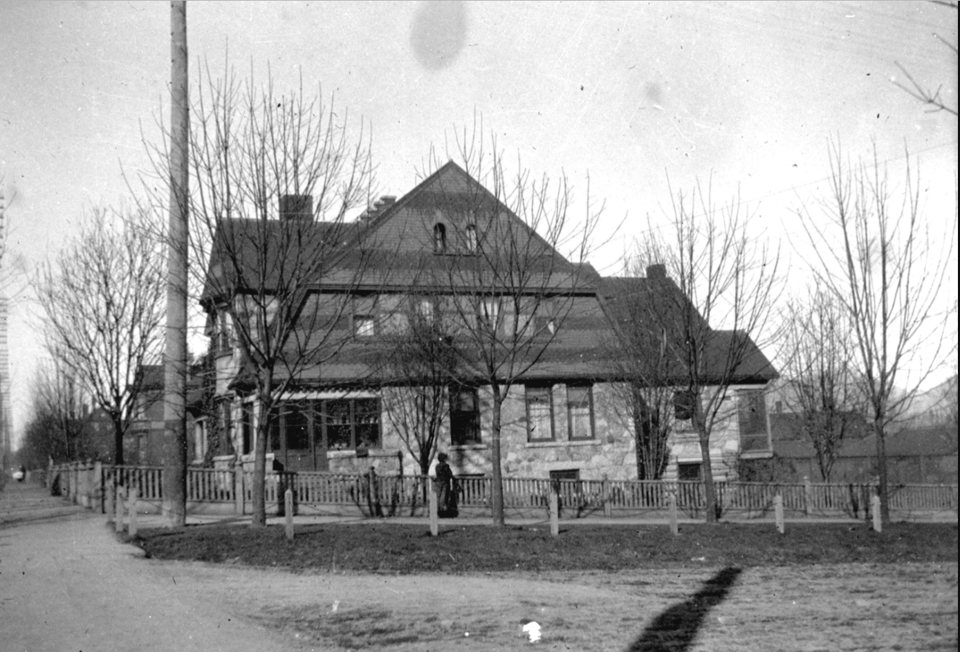 Browning lived at West Georgia and Burrard in a stone and brick duplex that Price designed, described as “Double Cottage B.”* According to Changing Vancouver, sugar baron BT Rogers bought the property in 1906, and had the house lifted, enlarged and turned into a hotel called the Glencoe Lodge.