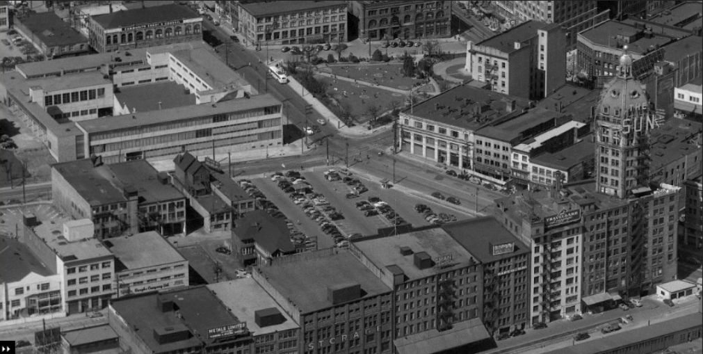 He wasn’t recognizing the parking lot of course, but the buildings that were once Vancouver’s first city hospital and included a men’s surgical ward, a maternity ward, a tuberculosis ward, and the city morgue which faced Beatty Street.
