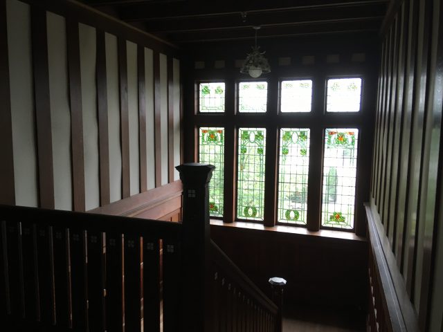 The stain-glassed windows, the elaborately tiled fireplaces and the wood paneled walls are just gorgeous, but the most interesting part of the house is the attic. You go through the servant’s quarters and up a narrow set of stairs until you get to a heavy metal door at the top.
