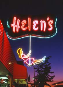 Many of Metro Vancouver’s neon signs wound up on the scrap heap, but the 1957 girl on the swing was recently restored and relocated. The letters changed from “Helen’s” to “Heights” as a way to continue its significance to the Burnaby Heights district.