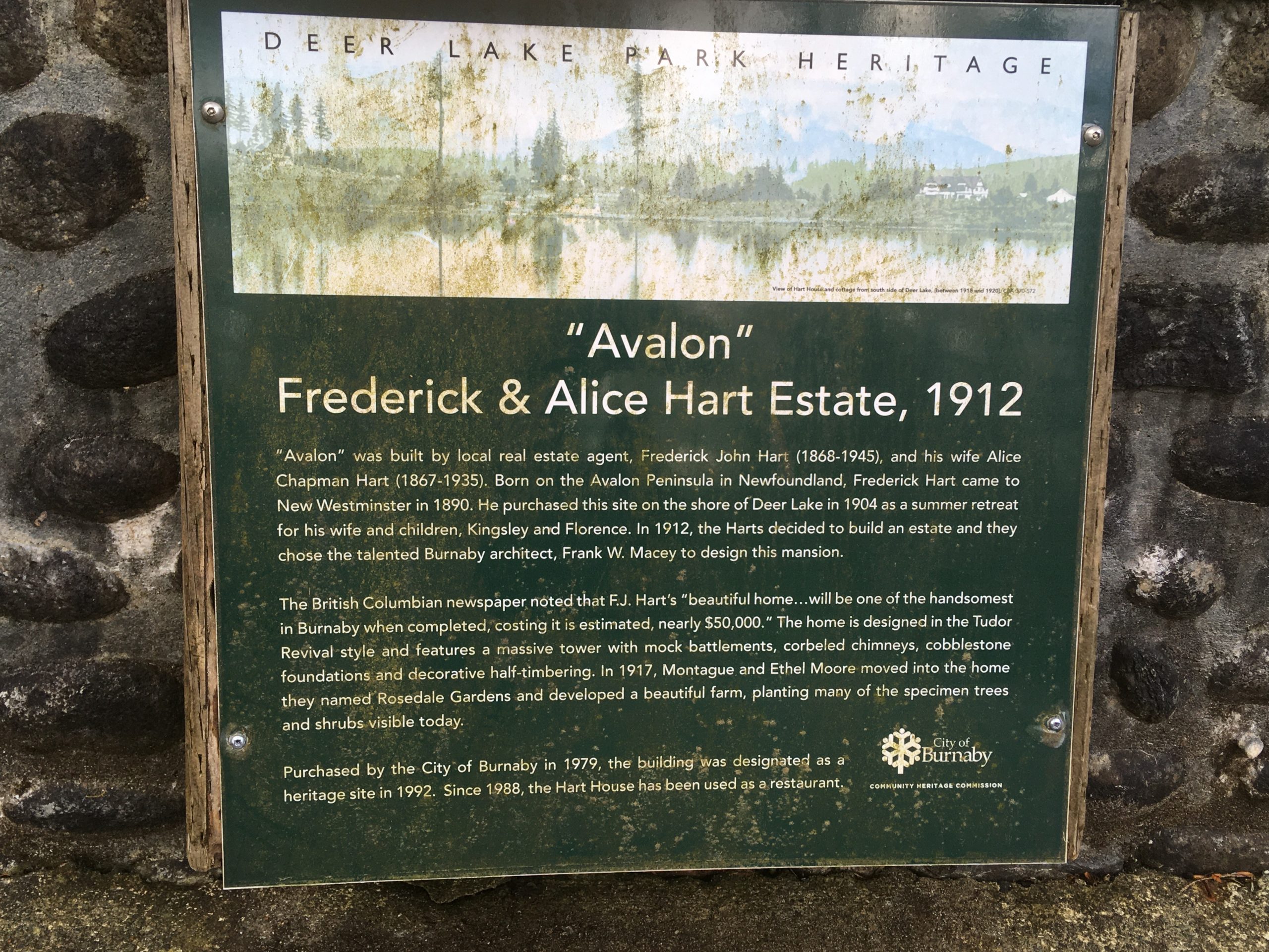 The Moore’s owned “Rosedale Gardens” until 1950. The City of Burnaby bought the property in 1979 and designated it as a heritage site in 1992. It’s been a restaurant since 1988.