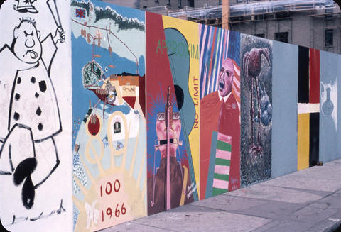Vancouver turned 80 on April 6, 1966 and Mayor Bill Rathie held a paint-in. The event was a huge success and included over 100 art students who had signed up and been assigned spots along the hoarding. The art stayed up until the fountain was revealed the following December.