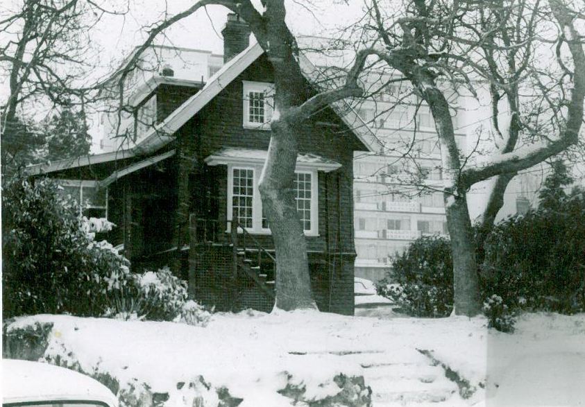 The Coach House first appears in the street directories in 1897 as the servant’s quarters for Castlewood, a mansion owned by William G. Bowman, proprietor of the Metropolitan Livery Stables on Yates Street. Bowman sold the mansion to Lt. Col. John A. Hall, a director of the Victoria Chemical Company in 1903 and in 1911 it was owned by Stephen Jones who also built and owned the Dominion Hotel (1876) at Yates and Blanchard. Jones lived in the house until 1940 where it looks like it was torn down to make room for the Bickerton Court high rise apartment building.