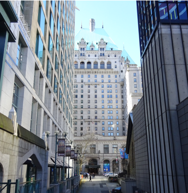It wasn’t so much that the rear (north side of the Georgia Medical Dental Building wasn’t “finished” – it was just clad plainly – like the south side of the Hotel Vancouver.