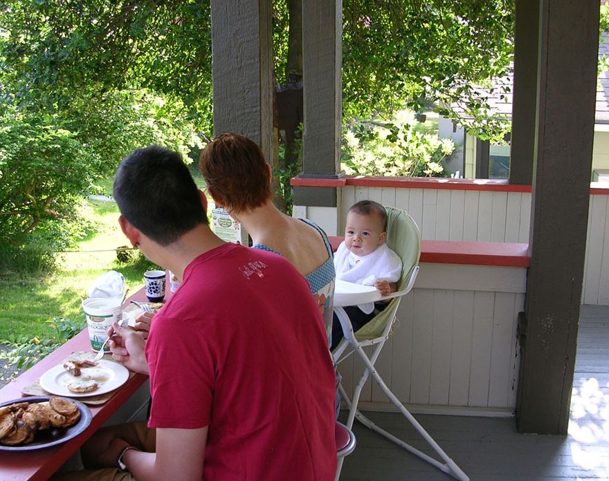 We learned that old architecture used common sense by incorporating overhangs to keep rain off exterior walls, a feature valued more following studies of leaky condos. Old-fashioned steep-pitched roofs were designed for better snow and rain runoff. A team of firemen who worked on our renovations, said balloon framing in old houses such as this allows the house to “give” in earthquakes. Mr. Roe’s cinderblock house, on the other hand, cracked during the last small earthquake. And no matter how hot the weather, the front veranda is always cool and breezy. These were all features we learned we were lucky to have as we got to know this house over the years.