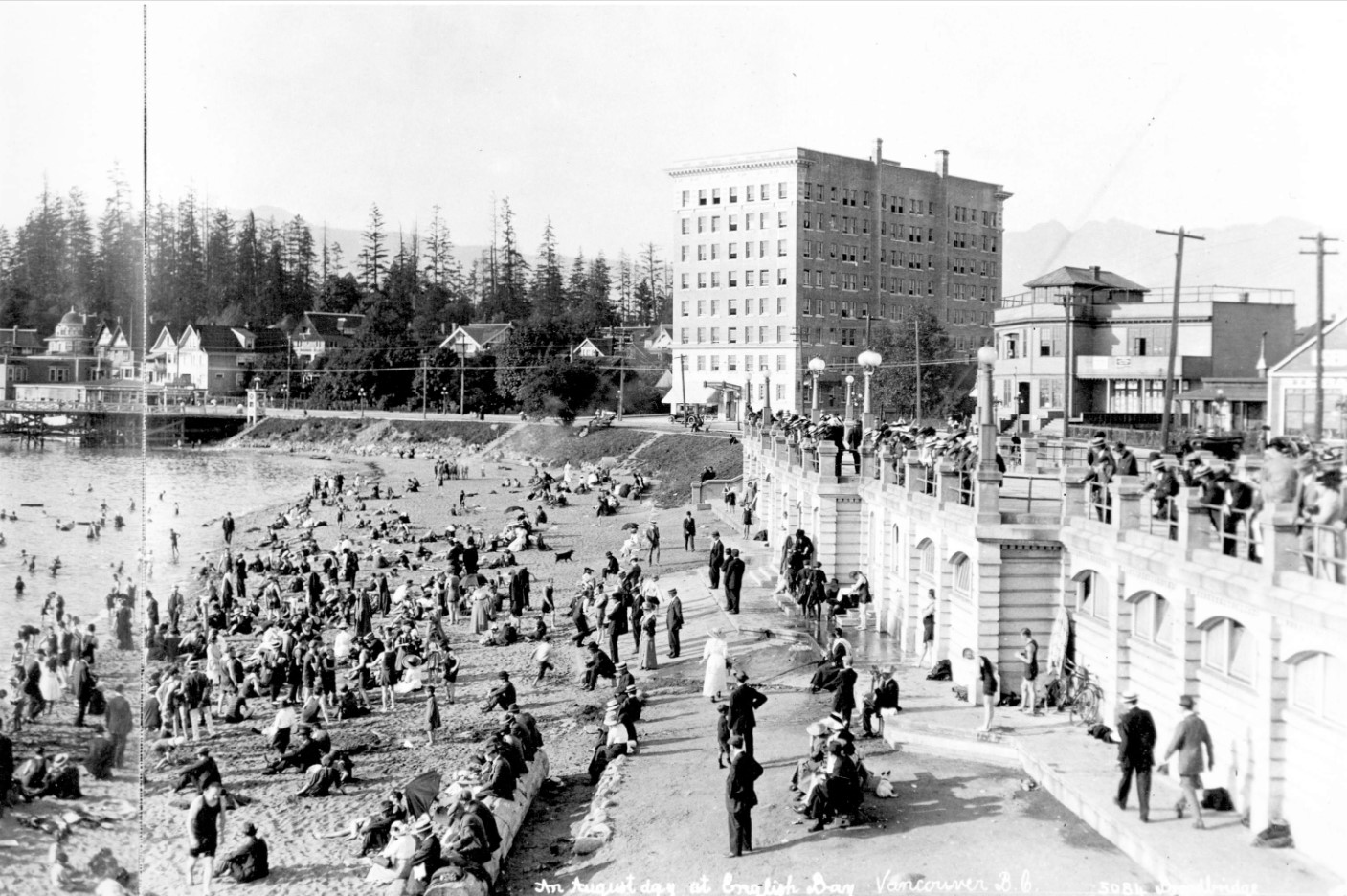 This lovely wooden bathhouse opened in 1906 and was demolished in 1931 when it was replaced by our current one. CVA 447-18, 1919