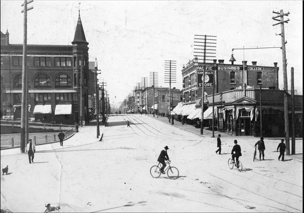 In the last 1925 photo of this article, you can see small sapling trees growing along Cambie, Pender, and Homer Streets. Those trees are now enormous-sized! One of the huge trees along Cambie blew over in a wind storm a few years ago and crushed a car.