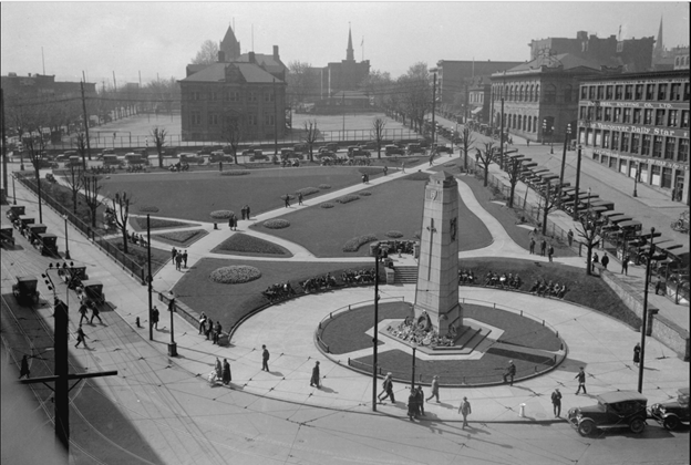 The church too was short lived. The Southams, owners of the Province Newspaper, which was housed across the street, donated funds to develop a park, which was then renamed Victory Square. By 1924, enough public money had been raised to build the cenotaph designed by G.L. Sharp. Sharp had the 30-foot cenotaph constructed from granite from Nelson Island.