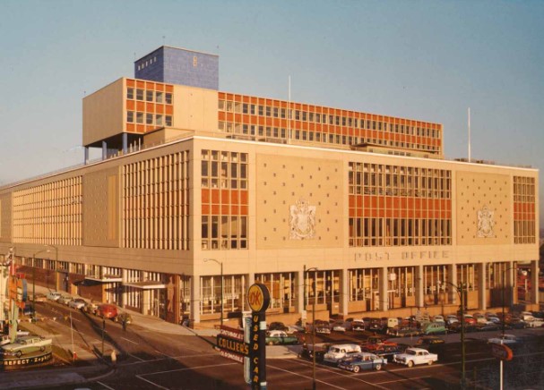 The Canada Post building on West Georgia also has a role in Hollywood North and it’s part of Vancouver Exposed. Where Sam uses the building as a metaphor for bad American television and business practices, I talk about it through its art, its tunnel and its roof.